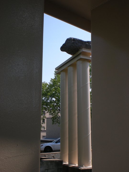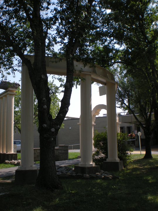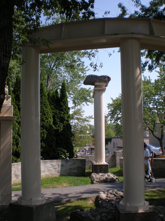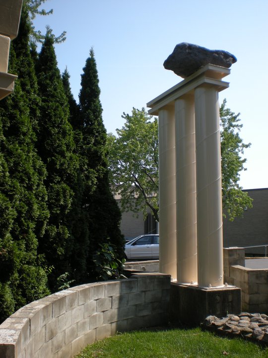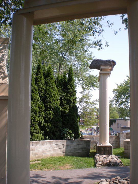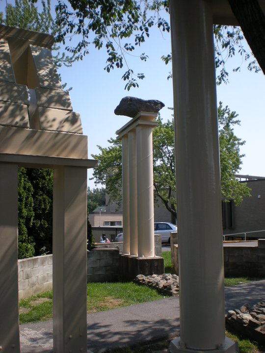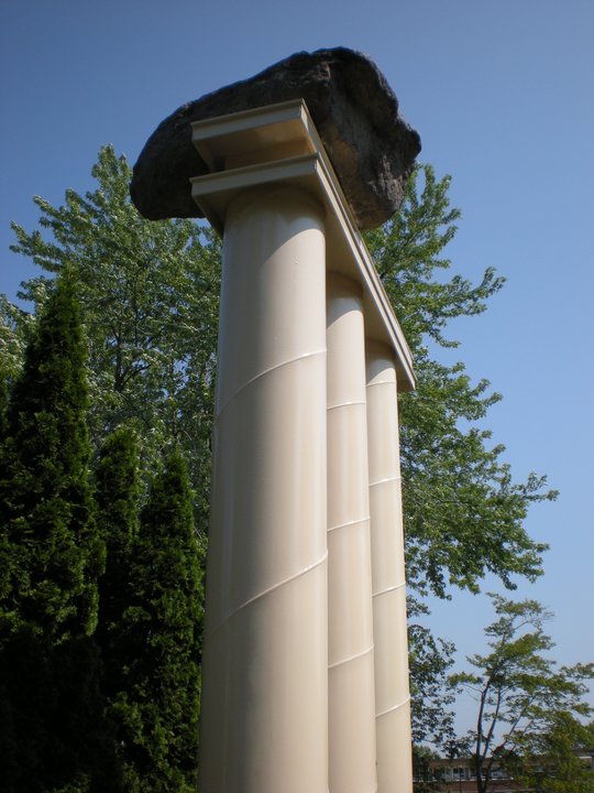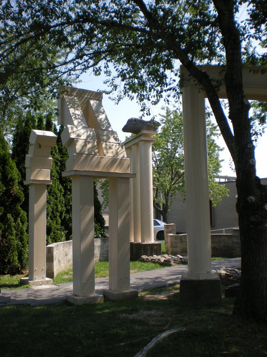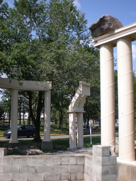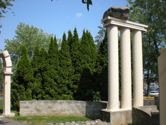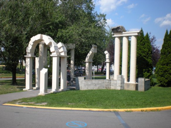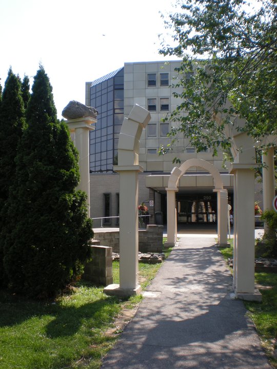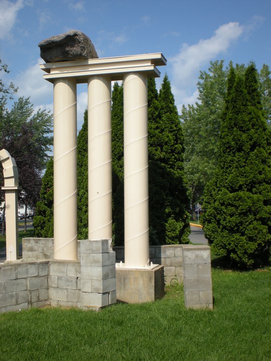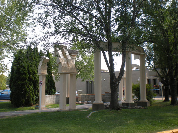 Œuvre installative conçue en 1986 et installée en 1989. L’œuvre crée un lieu de passage pour les employés et les utilisateurs de l’hôpital. De forme circulaire, la sculpture emprunte à diverses époques, avec comme témoin des éléments architecturaux.