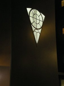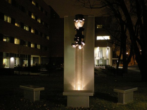 La lumière, éléments architecturaux: la façade de l’église de Limoilou et la tête de l’enfant témoigne de l’architecture art déco de l’hôpital de l’enfant-jésus situé juste de l’autre côté de la rue. (Source: PLEPUC, Présence du littéraire dans l’espace public canadien)