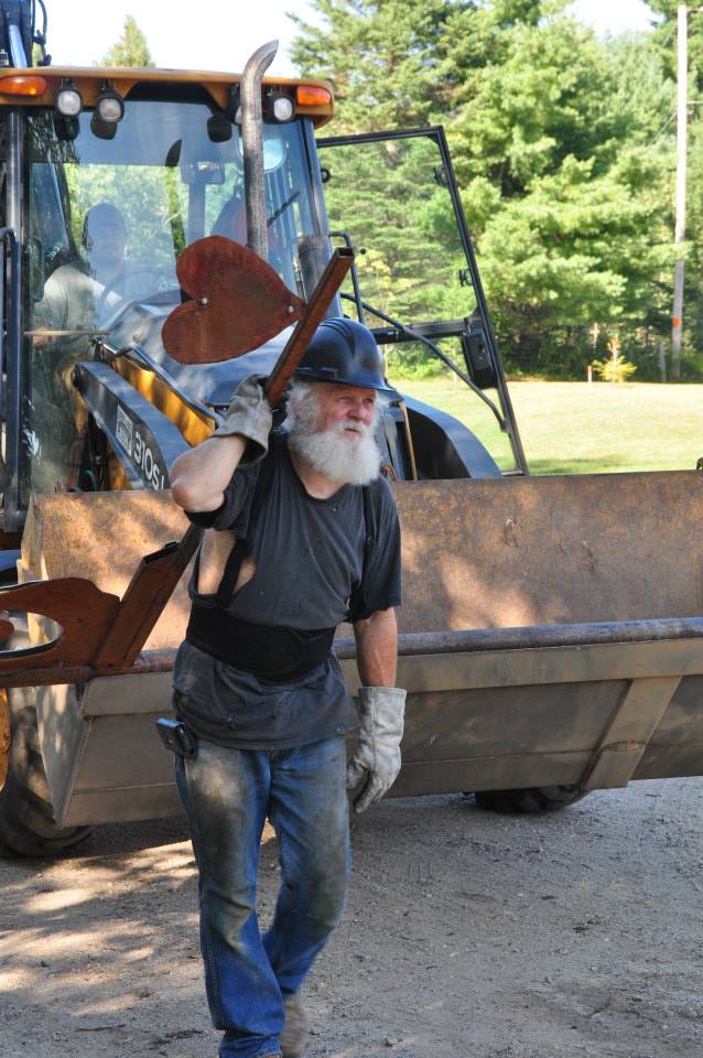 Mon ami, Sébastien Aubin, m’a capté en train de transporter le premier élément de ma sculpture, vers son lieu d’implantation depuis son lieu de réalisation. Le bougre de Sébastien me nomme The White Rock, traduction de Pierre Leblanc… J’aime bien ! Alors voici en direct grâce à lui, The White Rock transportant son œuvre au coeur !