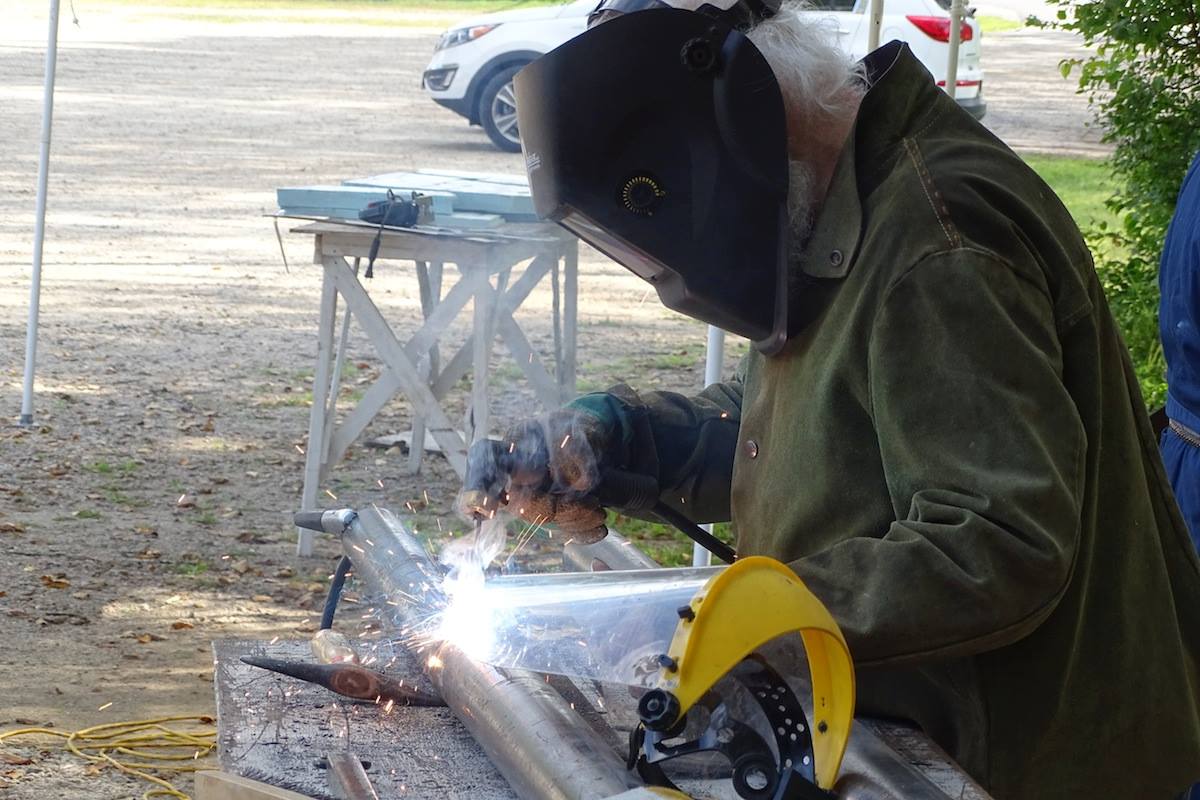 Mes aides pour la circonstance, Claude Tétrault avec la casquette rouge et Gilles avec la tête blanche, un jeune homme de 74 ans.