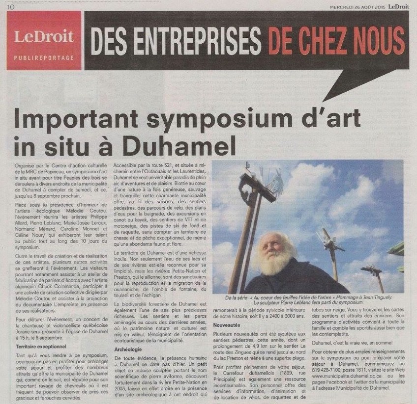 Le Droit_Symposium Duhamel_Pierre Leblanc Published 2 septembre 2015 at 858 × 833 in Symposium d’art in situ à Duhamel – « Au coeur des feuilles l’idée de l’arbre » ou Hommage à Jean Tinguely Partagez: Partager sur Facebook(ouvre dans une nouvelle fenêtre) Facebook Partager sur X(ouvre dans une nouvelle fenêtre) X Partager sur LinkedIn(ouvre dans une nouvelle fenêtre) LinkedIn Imprimer(ouvre dans une nouvelle fenêtre) Imprimer Plus Partager sur Pinterest(ouvre dans une nouvelle fenêtre) Pinterest Envoyer un lien par e-mail à un ami(ouvre dans une nouvelle fenêtre) E-mail J’aime chargement…