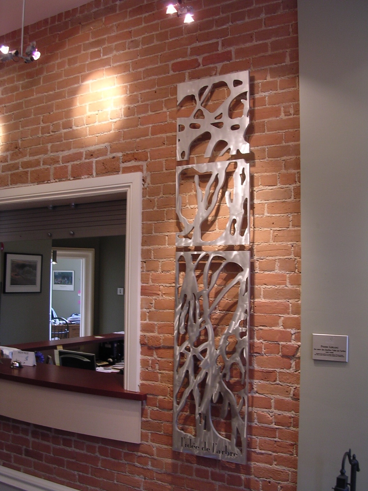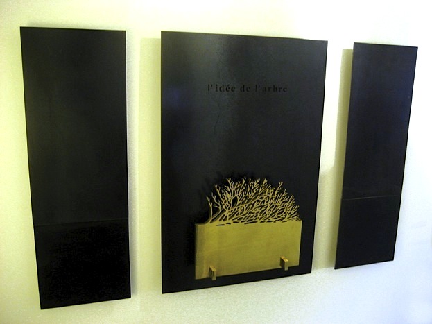 8500 $ Murale triptyque en acier bleui et bronze, signée par l’artiste et numérotées (tirage limité de 2 à 5 exemplaires de chaque murale). De plus, votre nom sera inscrit et gravé avec le mien sur la plaque honorifique qui accompagnera le retable.