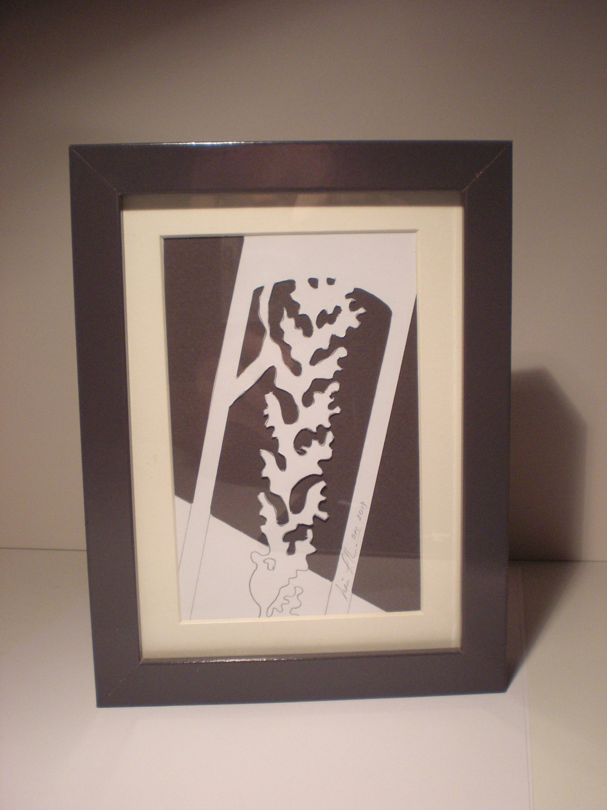 600 $ Un papier découpé original de 10 pouces x 10 pouces, encadré et signé par l’artiste. De plus, votre nom sera inscrit et gravé avec le mien sur la plaque honorifique qui accompagnera le retable.