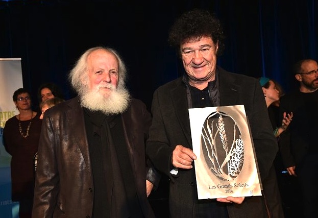 Robert Charlebois, lauréat 2014 du prix Les Grands Soleils du Conseil de la culture des Laurentides, avec le sculpteur Pierre Leblanc de Saint-Jérôme, qui a réalisé l’oeuvre symbolisant cette prestigieuse récompense.