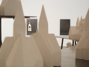 Pierre Leblanc questionne l’art et l’architecture religieuse, très présente dans le paysage québécois mais menacée de destruction. Connu pour ses installations en métal et ses grands travaux d’art public, Pierre Leblanc s’intéresse à l’aspect signalétique des objets. En ce sens, le clocher et la flèche des églises témoignent dans le travail de Pierre Leblanc de la diversité, de l’originalité et de la recherche esthétique des artisans de l’art sacré dans le paysage construit. (Source : MACL)