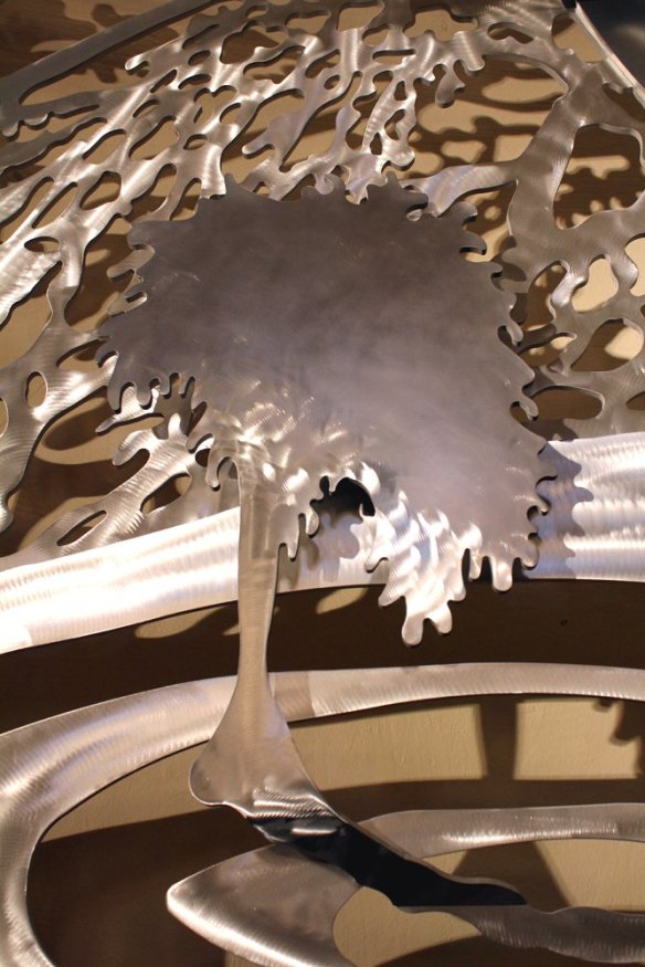 2011, aluminium découpé à l’eau, poli et brossé et acier bleui, 335 X 426 X 91 cm