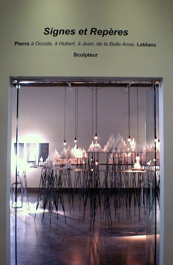 « Jeudi matin 6 juin, 7hres 30… Le transporteur est à la porte. Deux hommes se pointent dans l’entrée. Ils se nomment, Yves Poirier et Fernand Deraspe, deux Madelinots de la compagnie de transport : “ J.C. Transport Madelinot ”. Mon expo “Signes & Repères”, présentée en primeur au Musée d’art contemporain des Laurentides en avril 2011, puis ensuite présentée à Montréal, à la maison de la culture Ahuntsic à l’automne 2012, pour finalement monter vers le Nord à Amos en janvier dernier, va prendre place dans le camion. Destination le “Musée de la Mer” aux Îles-de-la-Madeleine situé à Havre-Aubert. « On the Road Again » c’est un peu le “feeling”que j’ai, car je vais encore vivre dans mes valises. Lundi 24 juin je prendrai l’avion vers le pays de mes aïeux.
