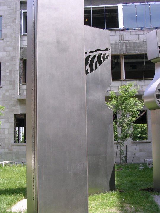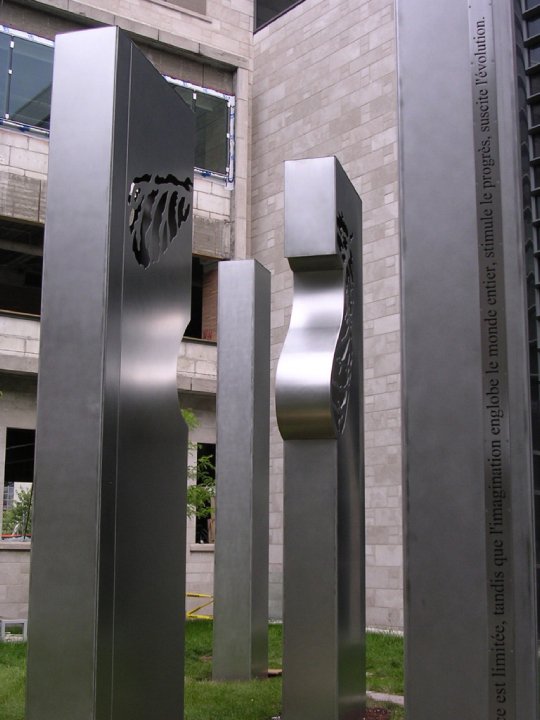 Pour voir les photos de l’installation de l’œuvre, allez sur l’onglet Art public jusqu’à Naissance, envol, vie…ou Pour la suite du monde et à droite de cet l’onglet vous trouverez: Installation de Naissance, envol et vie…Pour la suite du monde, cliquez=